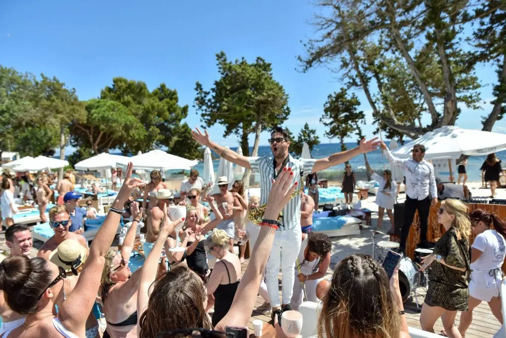 En Ibiza, el dress code respira libertad, pero con límites. Las fiestas al aire libre exigen comodidad sin sacrificar el glamour: vestidos largos de gasa con detalles metálicos, camisas hawaianas sobre hombros bronceados o pantalones fluidos en tonos neutros son opciones ganadoras. Sin embargo, en clubs como Pacha o Ushuaïa, el «smart casual» se impone: evita chanclas y opta por zapatos cerrados.